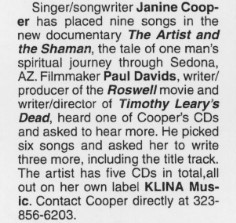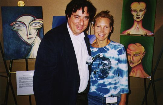 Paul Davids and Janine Cooper, who has nine of her songs and many piano works in "The Artist and the Shaman." Janine, who goes by J9 when she signs her paintings, has cteated dozens of canvasses of aliens. | |||||||||||