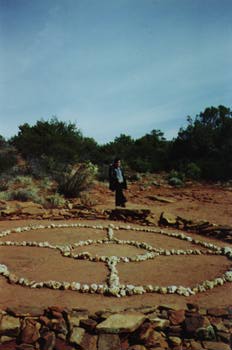 Paul Davids by the Medicine Wheel that overlooks Boynton Canyon, Sedona, where Rahelio explains the wheel's sacred mysteries and powers for prayer. | |||||||||||