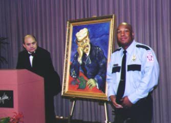 Abbott Alexander as Vincent van Gogh in hospital after accident at Rose Parade |