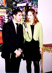 Lee Newman (left) as the Art Critic, with Stephanie Erb, as Maria, the TV News Interviewer