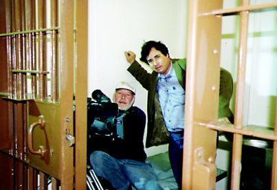 Writer/Director Paul Davids (right) in Vincent's jail cell with Cinematographer / Co-Producer David W. Smith of Scotland |