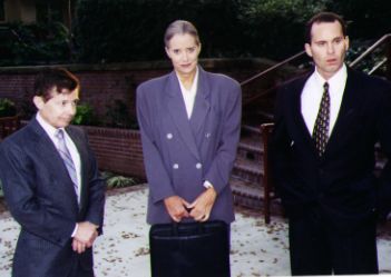 District Attorney (played by Brian Drillinger, right) with Sally Kirkland as Detective Brooke Murphy (center) and Lou Wagner as Vincent's attorney, Gabe Burton |